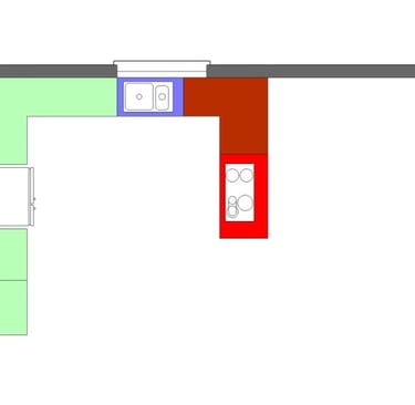 Certifique-se de que o layout da cozinha segue o princípio do triângulo de trabalho, que liga o fogão, o lava-loiça e o frigorífico. Isto facilita a movimentação e a eficiência ao cozinhar.