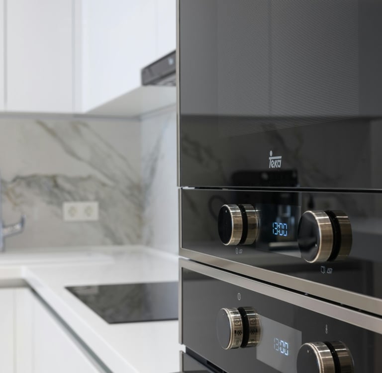 Escolha aparelhos energeticamente eficientes que se adaptem às suas necessidades. Considere integrá-los no design para uma aparência mais limpa.